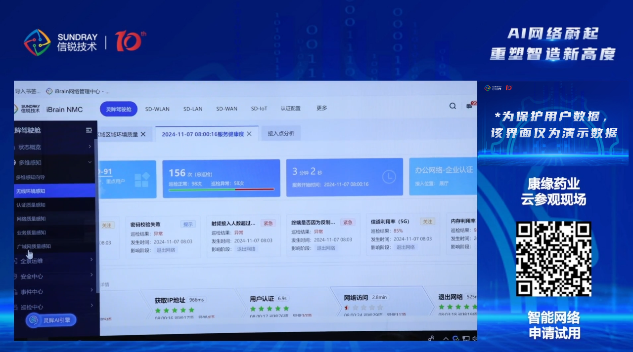 2024年11月27日,深圳市信锐网科技术有限公司联合江苏康缘药业股份有限公司举办了“AI网络蔚起,重塑智造新高度”沉浸式云参观康缘药业活动,与线上参与活动的百余名制造企业专家、企业高管以及技术精英共同探讨智能制造的创新解决方案和康缘药业智能制造的实践经验。各大直播平台观看总人数1100+,发布会直播间还设置专家为观众答疑解惑,积极互动,反响热烈。